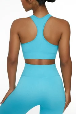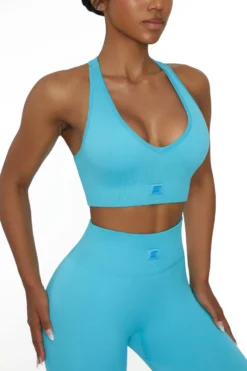 Go get it with the Be The Best sports bra, a seamless, ribbed style made from super stretchy fabric that moves with your body for comfort. Designed with removable padded cups for extra support, this racer back design has a v neckline and will contour and define the figure with a secure underband. Partner it with co-ordinating high waisted leggings from the Bo+Tee range for your best workout look yet.