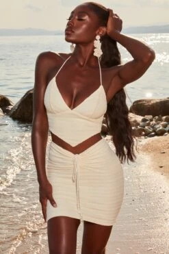Live out your island girl dreams in our crochet mini skirt. Sitting high on the waist with a V shaped waistband and beaded tie front design, our short knit skirt was made for dreamy summer vacay days. Style yours simply with the matching plunge neck crop top and lace-up sandals. Island life is better, babe.