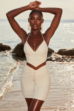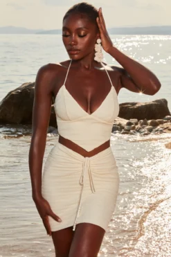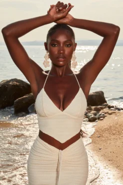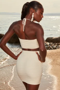 Live out your island girl dreams in our crochet mini skirt. Sitting high on the waist with a V shaped waistband and beaded tie front design, our short knit skirt was made for dreamy summer vacay days. Style yours simply with the matching plunge neck crop top and lace-up sandals. Island life is better, babe.